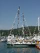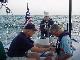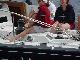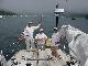 Our shore brigade split up, with Jim & Steve headed more directly back to the boat, picking up fresh lobster along the way, while Rick & Priscilla ransacked the local market to replenish provisions for the next three days. Back aboard it was time for relaxation and log writing before Priscilla dispatched the lobsters in two large steaming pots. Recording the cooking and the table for posterity, we devoured the crustaceans with glee. Satiated, we again "went to the movies" to watch the Andrea Gail sink into the eternity of The Perfect Storm. And so to bed, perchance to dream.