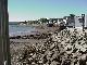 A dreamer might have been tempted by the real estate page on the wall, complete with description, picture of the building, and a price of $59,000. Outside, the boys, waiting for Priscilla's transaction to be completed, remarked at the peeling paint, and weathered cornices. Rick posed the question of how far a screwdriver might penetrate the wood, to which Jim calmly replied, "To the handle." We retreated the 6 clicks downriver, now almost dry at low tide, to highway 1 and continued toward Annapolis Royal. The way was dotted with the tiny linear towns of Cornwallis, Clementsport, and Upper Clements each like the last with small houses of peaked roofs, most with weathered wood siding.