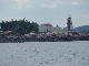 Our reservation turned out to be a mooring, not the dock we had anticipated - there were no docks to tie up to other than the limited space for charter boats to take folks whale watching off Campobello Island. We inflated the rubber dinghy and headed ashore after a chicken chow mein lunch. Steve and Jim remarked at how the town had been improved since their last visit ten years (or more) ago. It was clearly set up for tourists with shops along Water street in fresh coats of paint, flags on the lightposts, and knickknacks for sale at every door. We walked on up the hill to the Algonquin Hotel and enjoyed iced tea and lemonade on the balcony. On the way down we looked at several churches. For a town of about 1800 souls, they had at least six churches - maybe lots of saving to do. St. Andrews was founded by British Loyalists who had lived in Castine, Maine but did not want to be part of the revolution. So they packed up their houses, some literally, moved north and re-erected them in St. Andrews, Canada.