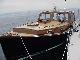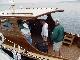 Even at the head of Somes Sound the fog was just above the masthead, and steadily lowered as we departed at 0800 for our rendezvous with Mel & Molly Converse in Castine. We picked our way from waypoint to waypoint with the autopilot, dodging lobster pots continuously out through Western Way, across Blue Hill Bay, Casco Passage, and the turn up Eggemoggin Reach. By then the fog had lifted enough to see shore on both sides as we approached the Eggemoggin bridge. Mathematics said our 75 foot mast, plus two feet of antennas and wind instruments would slide under the 85' bridge clearance, but we still approached at the center of the span at dead slow speed to slip under. Just beyond Buck's Harbor, we rendezvoused with Dan & Nancy Paduano's brand new 38 foot power boat Top Hat. She is a custom 38' cruiser built on an extended lobster boat hull with extensive woodwork in the style of power yachts from the 1940s. The beautiful skylight and round portholes gleamed with many coats of varnish, as did all of the woodwork aboard.
