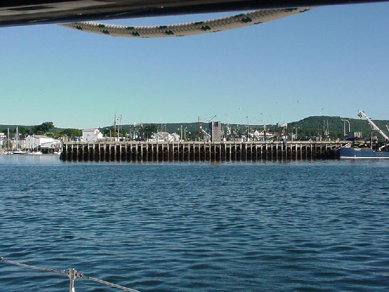 By great surprise, there were two open slips at the usually jammed dock. However, the dock man assured us that vessels were returning yet that Tuesday night and so we moved to the temporary dock to await the return of Jeff and Ben. A long discussion with the dock man and a phone call confirmed that one of the returning vessels would, in fact, not return, so we moved back to the original slip we had taken and secured for the night. That left time for Steve, Jim and Rick to sneak into the Docksider to join Jeff and Ben for desert of blueberry pie ala mode! Well fed, we all retired for a long and peaceful night's sleep.