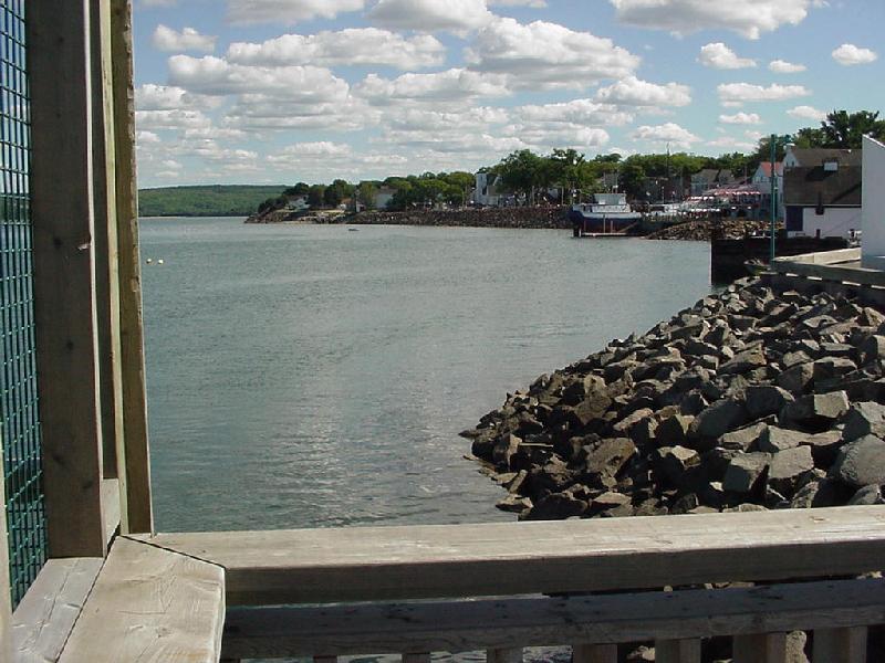 We drove on south (the road signs seem to call it West!) to Yarmouth, the largest city on the southwest coast, and the destination of the big ferries from Bar Harbor and Portland. Along the way we saw harbors created by rock breakwaters, often with a very narrow slot into an "L" shaped basin - a solution to 25-foot tides and high seas. Nova Scotia has limited the lobster season to 6 months in many places, and windrows of lobster traps lined many a wharf. Under crystal skies we worked our way back up the coast on highway 1 through the little towns. Nova Scotia's population is basically linear - houses spaced along the road with very few cross streets.
