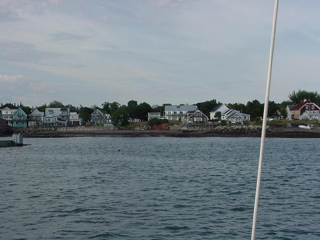 Underway at 0703 under a hazy sky and calm winds, we set our course from cape to cape southwest for Portsmouth. First we watched Cape Elizabeth slide by, then Wood Island and Cape Porpoise. A nice westerly set in and we romped along hitting 9.2 knots past Kennybunkport and within a mile of York Ledge before the wind died away and we continued under power. As we closed the last miles into Portsmouth, the hot air from the land greeted us like a blast furnace. Record temperatures of 96-99 were being set all along the coast, and we had sailed into it.
