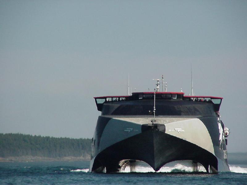Closing in on Digby, we received a call from Fundy Traffic advising that the ferry Princess of Arcadia was approaching from St. John and would arrive at the Digby Gut at about the same time we would. We had already spotted what looked like commercial traffic on the northwest horizon, but now could relate it to a 260 foot ship doing 16 knots headed for the same place we were. The Arcadia's skipper was called too, and we quickly closed the distances over the next 30 minutes.