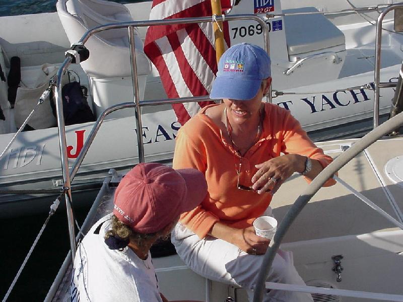 Bob Johnstone again passed out awards, declaring that a) he could not accept a first place, and b) that yesterday's "winner" (because Bob again refused 1st", was not eligible to win again. That meant the third place finisher was declared the winner - Javelin. Rick received a J Boats duffel as the person in the fleet who had come the farthest to participate. Before dinner, Rick had been talking with a number of the boats, and it turned out that many of the wives were new to racing. (Many of the boats were sailed by husband and wife teams.) Three in particular included Beth Apold of Excalibur, Carol Willauer of Eight Bells, and Paula Ray from Maine Sail. So Rick commented to the crowd about how women had not been allowed to skipper in collegiate sailing when our Javelin crew first sailed together at Dartmouth. And how Steve played a role in getting women accepted through the women's regattas Steve hosted which became the original New England Intercollegiate Women's Association. The evening ended early, and we were back aboard Javelin tucked in our bunks by 2200.