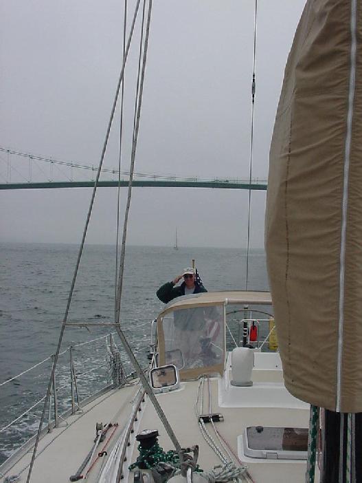 Because the other two J 160s were both deep draft (9 feet vs Javelin's 7), and one was flying a larger jib, each of us started at a different time. Steve sailed us nicely across the line 26 minutes after the first boats had started, with the second J 160 2 minutes, thirty seconds behind us, and the last one another 2.5 minutes back. The smaller boats had started with a modest NW wind blowing through the starting area, and we could see that they had encountered some flat spots before picking up the southwest wind in the ocean.