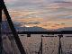 We arrived about 5 minutes ahead as we roared past the lighthouse, almost parallel to the shore doing 11 knots with the current, and Digby Gut opened suddenly to starboard. While the outer coast was bare of lights, the Gut was rimmed with lights which defined its edges. The nav system signaled a sharp starboard turn, we let it, and watched as it headed the boat for the black, steep, 200 foot high western side of the opening. At first Rick thought this was just a compensation for the heavy current sweeping around the point and into the Gut, while Jim continued to note the unfavorable heading with increasing clarity. A punch of the button returned Javelin to human control and we headed down the center of the half-mile wide entrance, hitting 12 knots at the narrowest point. The Arcadia, bathed in lights, was pushing in right behind us. We popped through the Gut into the expansive Annapolis Basin and slowed down as we passed Arcadia's dock to concentrate on finding Digby wharf in the maze of lights ahead.