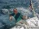Our rock-and-roll ride down the waves continued in the building seas. Tricks at the wheel were reduced to 30 minutes as the exercise value increased. Slowly the wind veered toward the southwest, pushing us back east toward the rhumbline as we sailed above the 52 degree course to avoid accidental gybes. Despite our efforts, we still did one with a "bang" that shook the boat as the 30 foot boom slammed across. We gybed back and continued on. By 1700 we were steering 60 -70 degrees, no longer able to sail down toward the waypoint on a 52 degree heading, and moved east of the rhumb. Five miles later we gybed for Long Island steering 35-40 degrees, aided by a southeast current set.